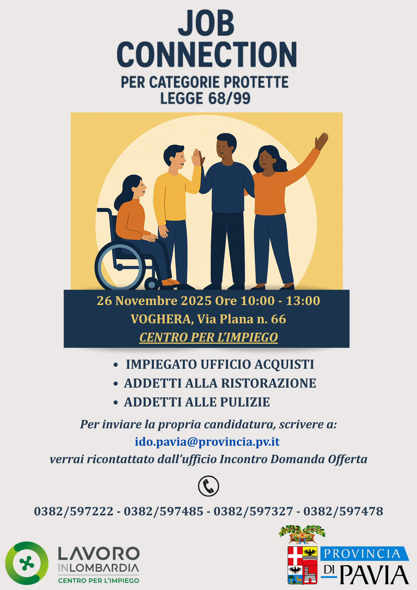 Job Connection per le categorie protette (L. 68/99) – Centro per l’Impiego di Voghera 26 Novembre 2025